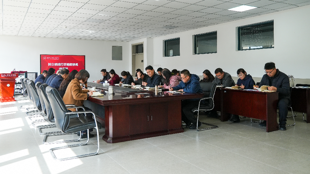 为深入学习贯彻习近平总书记关于树立和践行正确政绩观的重要论述,全面落实全省教育工作会议及上级领导讲话精神,3月31日上午,学院在思齐堂二楼会议室召开党委理论学习中心组学习暨开展树立和践行正确政绩观学习教育读书班会议。学院党委委员、各党支部书记、各部门负责人参加会议,会议由党委书记殷国手主持。
