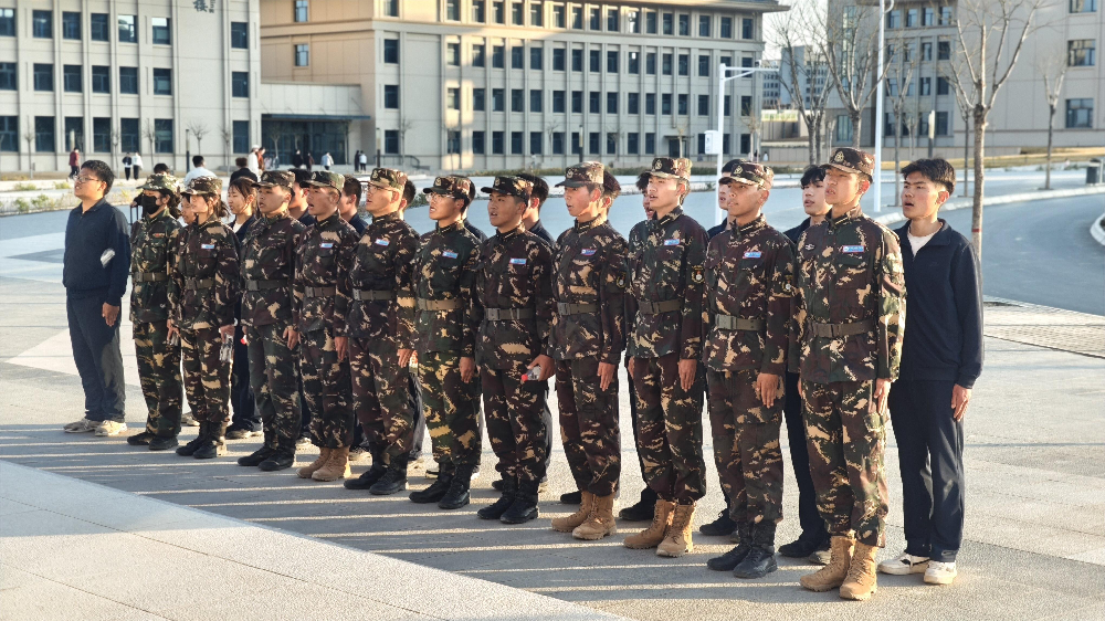 晨曦微露,早训如期开启。队员们准时集结,身着迷彩,身姿挺拔如松、目光坚定如炬。队列训练中,队员们精雕细琢齐步、正步每一个动作,摆臂、踢腿、落脚反复打磨,任凭晨风微凉,始终保持标准姿态,用汗水校准每一处细节。晨光渐盛,队员列成严整方阵合练,挺拔身影与朝阳交相辉映,构成校园最庄严动人的风景,以一丝不苟的训练践行使命担当。