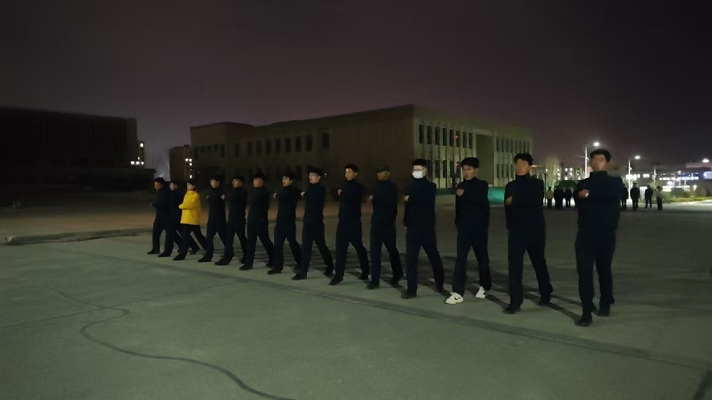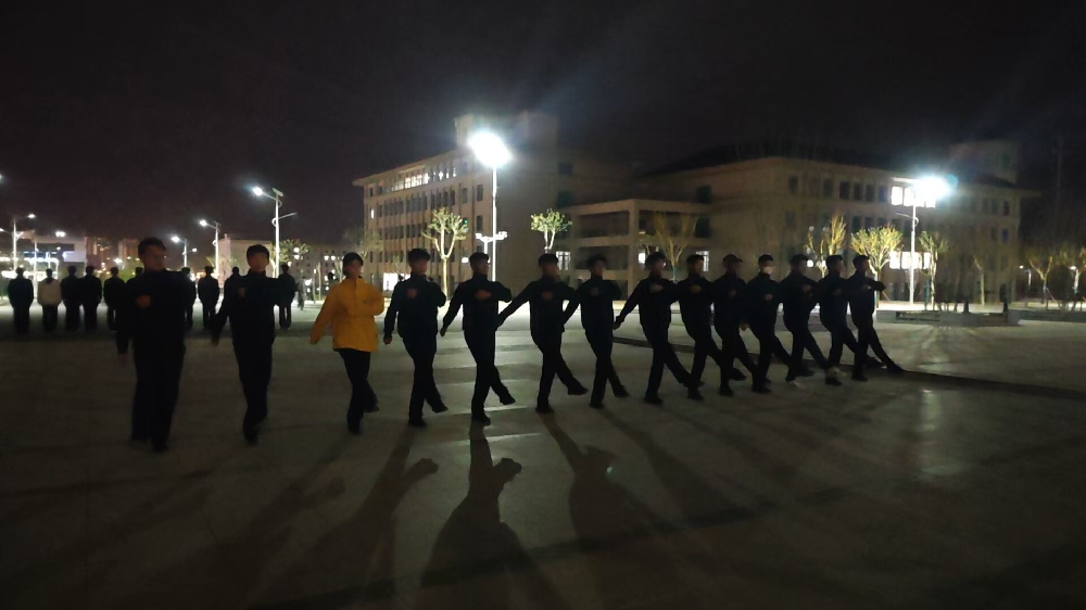 暮色降临,队员们身着深色训练服,迎着队旗有序集结,借着微光梳理口令、校准节奏,确保每一句指令清晰有力、掷地有声。教官悉心指导,站姿、手型、排面逐一精修,细微转身、毫厘看齐均力求精准无误。晚训核心的正步训练中,从单个动作分解到整体队列行进,队员们踩着节拍反复锤炼,铿锵脚步声整齐划一,每一次抬腿、每一次落脚,都承载着对国旗的赤诚与热爱。