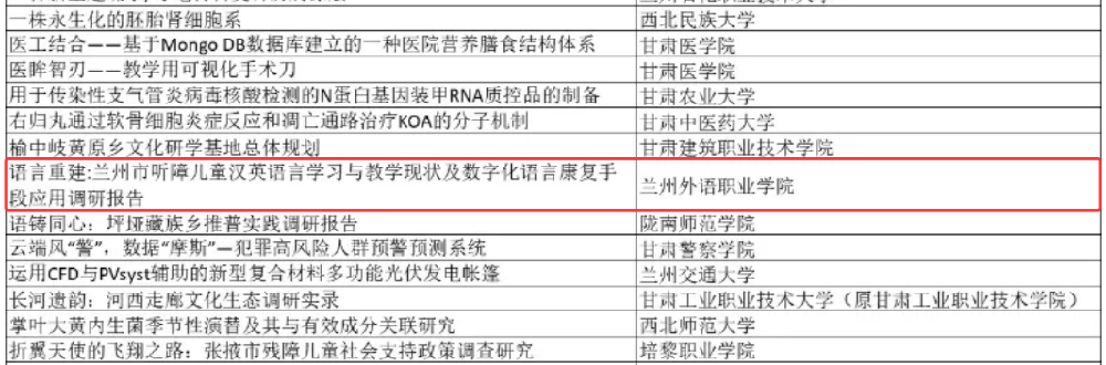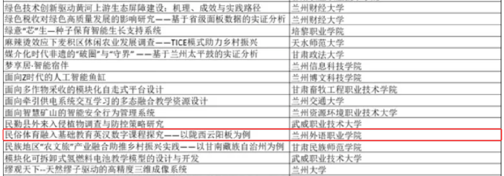 捷报频传,载誉而归!在由共青团甘肃省委、甘肃省教育厅、甘肃省科学技术厅、甘肃省工业和信息化厅、甘肃省科学技术协会、甘肃省科学院、甘肃省学生联合会联合主办的第十五届“挑战杯”甘肃省大学生课外学术科技作品竞赛中,我校参赛团队以卓越的学术素养和澎湃的创新活力勇创佳绩,斩获一等奖2项、二等奖3项、三等奖2项!我校在该项被誉为中国大学生学术科技“奥林匹克”的顶级赛事中以一、二等奖获奖总数创辉煌战绩,谱写了学校科技创新育人的崭新篇章,生动彰显了我校学子矢志创新、追求卓越、勇攀科技高峰的时代风貌!