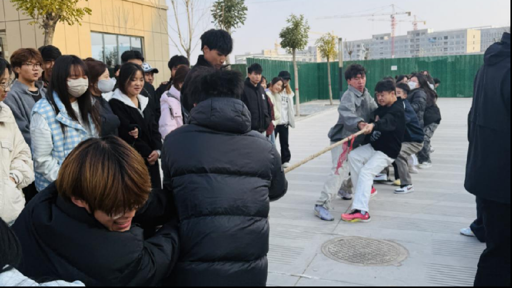 “一个班,一家人,一条心,一股绳!” 随着这句热血标语在赛场边醒目亮起,11月13日,教育学院“凝心聚力,神采飞扬”拔河比赛在1区2号教学楼前圆满落下帷幕。这场持续4天的赛事,以一根麻绳为纽带,将青春热血、团队默契与集体荣耀紧紧相连,织就成初冬校园里最鲜活动人的风景。