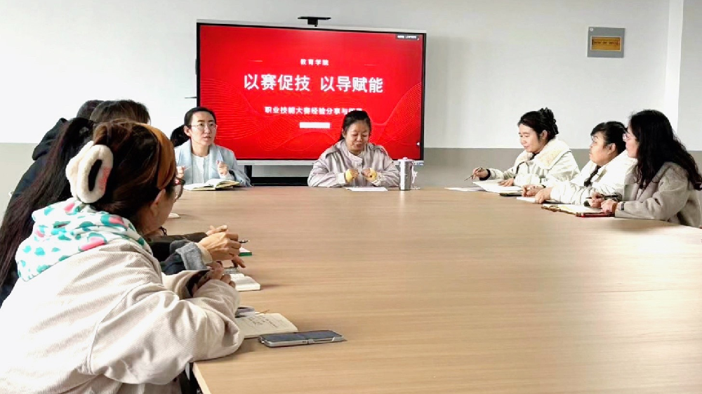 在交流环节,教师们围绕备赛资源整合、实训教学改革、学生能力分层培养等问题踊跃提问,朱老师逐一细致解答,现场氛围热烈。会后,教育学院负责人表示,此次分享为学院技能竞赛工作指明方向,教育学院将以此为契机,完善备赛机制、深化赛教融合,推动专业人才培养质量提升。
