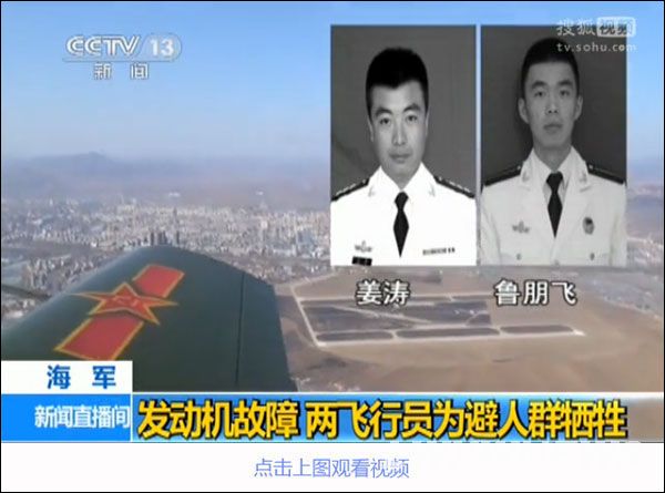 新华网北京5月26日电(刘大勇、吴登峰)海军飞行员姜涛、鲁朋飞面对发动机空中起火的重大险情,果断驾机避开人口密集区域,终因高度过低处置时间短促,无法跳伞,壮烈牺牲。