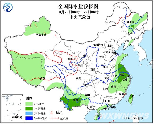 中国气象网讯 据中央气象台消息,昨天白天到夜间,从西南地区到长江中下游一带普遍出现小到中雨天气。云南中西部、安徽中部、江苏中部等地部分地区降大雨,云南局地暴雨。
