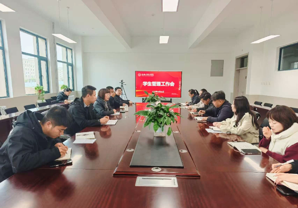 2025年10月11日下午,学生处在5区1号楼二楼会议室召开学生工作例会。会议由学院副院长刘琳丽主持,学生处全体成员及各二级学院团学主任参会。