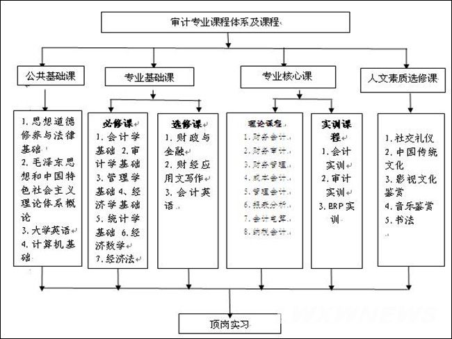 根据审计专业的特点,结合国家标准及我院教学实际、结合学生学情,以第一阶段调研结论为依据进行课程体系构建。打破原有传统课程体系,把课程体系分为“公共基础课程、专业基础课程、专业核心课程和人文素质选修课程”四位一体的课程体系。本课程严格遵循学生的认知发展规律,由易到难、由简单到复杂、由分散到系统地进行编排的。