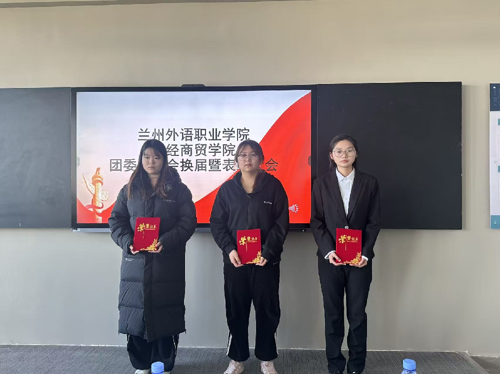 会后,新老学生干部合影留念,定格下薪火相传的珍贵瞬间。此次换届暨表彰大会既是对过往成绩的总结与肯定,更是对未来工作的展望与启航。新一届团委学生会将肩负使命、砥砺前行,以青春之我、奋斗之我,为兰州外语职业学院财经商贸学院的发展注入源源不断的青春活力。