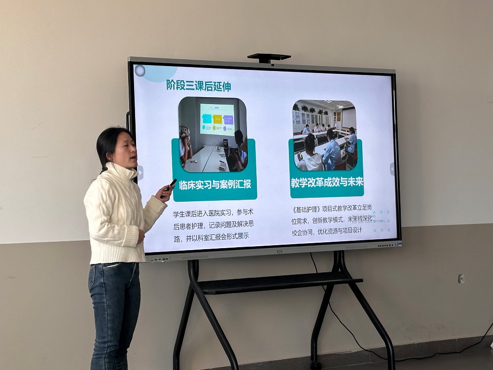 汇报会上,各课程负责人紧扣职业教育“岗课赛证”融合要求,结合高职护理、健康管理等专业人才培养目标,从课程定位、教学内容重构、教学方法创新、评价体系优化、数字化资源建设等方面展开详细汇报。《急危重症护理》课程团队聚焦临床急救岗位核心能力,引入情景模拟、案例教学法,将急救技能操作与临床思维培养深度结合;《护理礼仪》课程则立足护理服务岗位需求,融入行业礼仪规范与职业素养要求,通过角色扮演、实景演练等方式,让学生在实践中塑造专业形象;《药物化学》《药剂学》等课程负责人着重介绍了课程内容与药企岗位标准的对接情况,以及虚拟仿真实验教学资源的开发与应用;《基础护理学》作为专业入门课程,团队分享了分层教学、理实一体化教学模式的实践成效;《人体运动学》《作业疗法》课程则结合康复治疗岗位需求,阐述了课程如何助力学生掌握运动康复评估与干预的核心技能。
