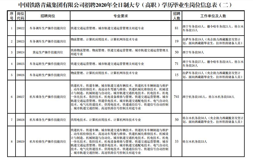 中国铁路青藏集团有限公司根据企业发展需要,拟招聘2020年全日制普通高校大专(高职)学历毕业生,具体事宜公告如下: