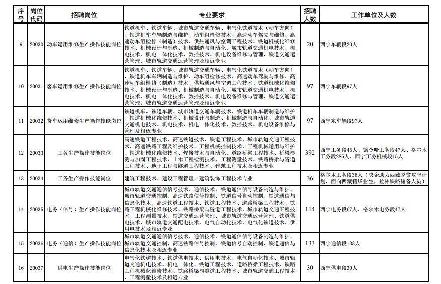 2.符合招聘岗位要求的专业条件,列入国家招生计划、具备派遣资格,2020年和2019年毕业的全日制普通高等院校大专(高职)学历毕业生。除岗位代码为20023、20026、20028、20034外,其余招聘岗位必须在校期间所学专业为铁路方向或所学主要课程中包含铁路专业课程;