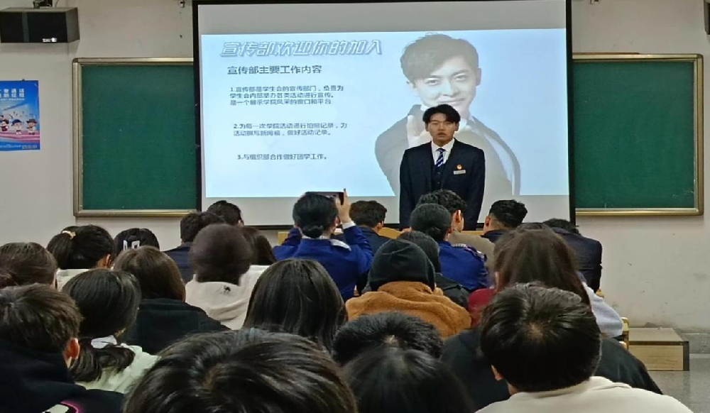 接着,学生会宣传部、组织部、学习部、办公室部、社会实践部、文体部、权益部等部门,依次介绍各部门工作内容、部门职责、工作流程、相关活动等情况,使学生会纳新活动的开展井井有条,也为学生们加入各部门提供清晰有益的指导和帮助。