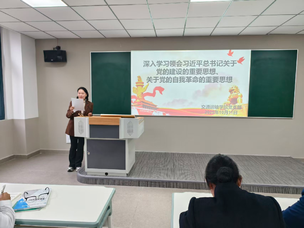 10月11日下午,由交通运输学院党支部书记丁思含同志带领31期入党积极分子对“深入学习领会习近平总书记关于党的建设的重要思想、关于党的自我革命的重要思想”进行学习。