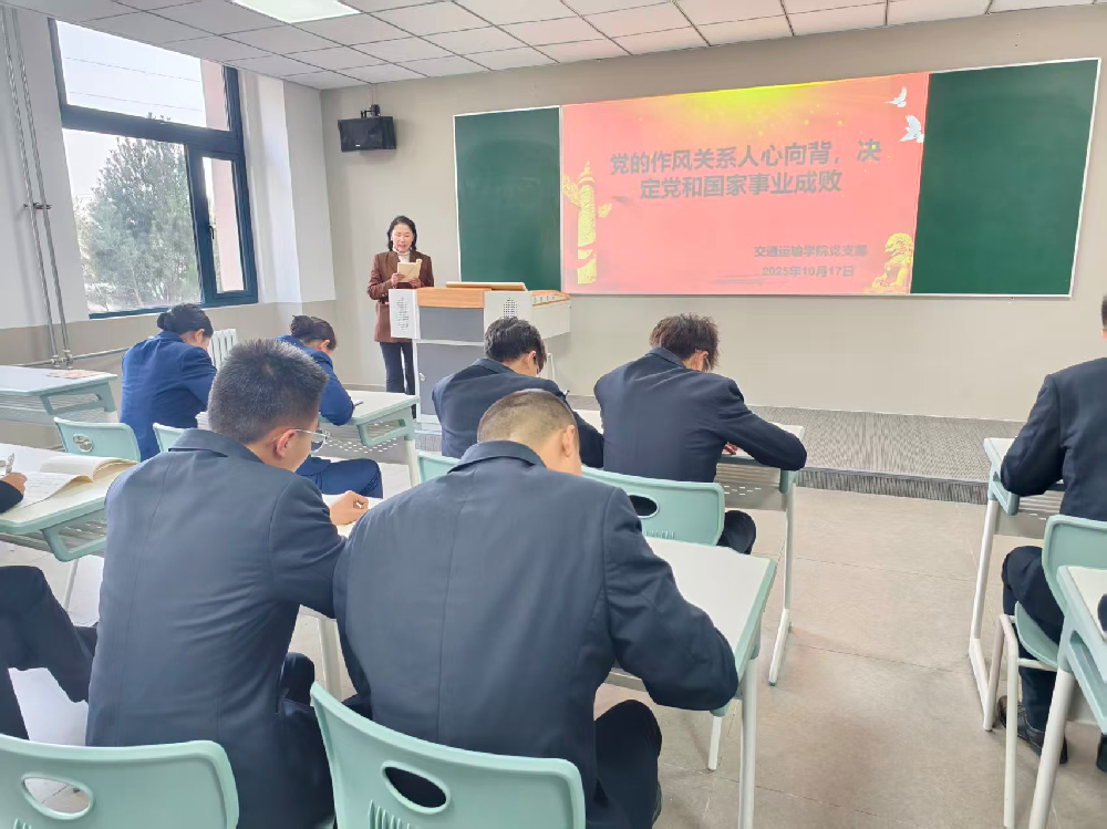 10月17日下午,由交通运输学院党支部书记丁思含带领31期入党积极分子学习“党的作风关系人心向背,决定党和国家事业成败”主题党课。