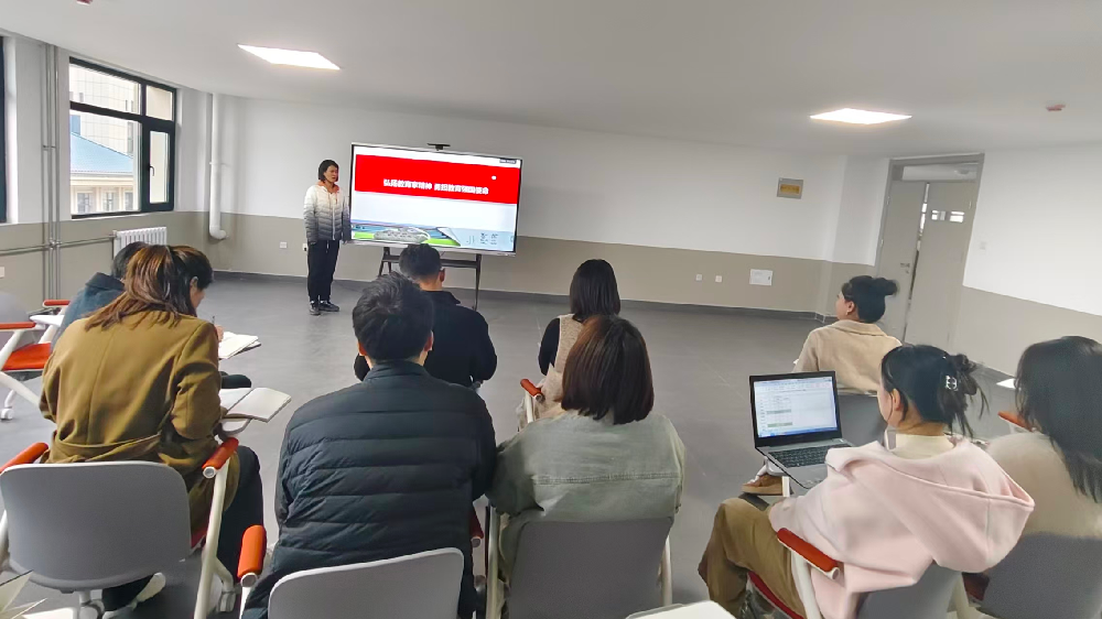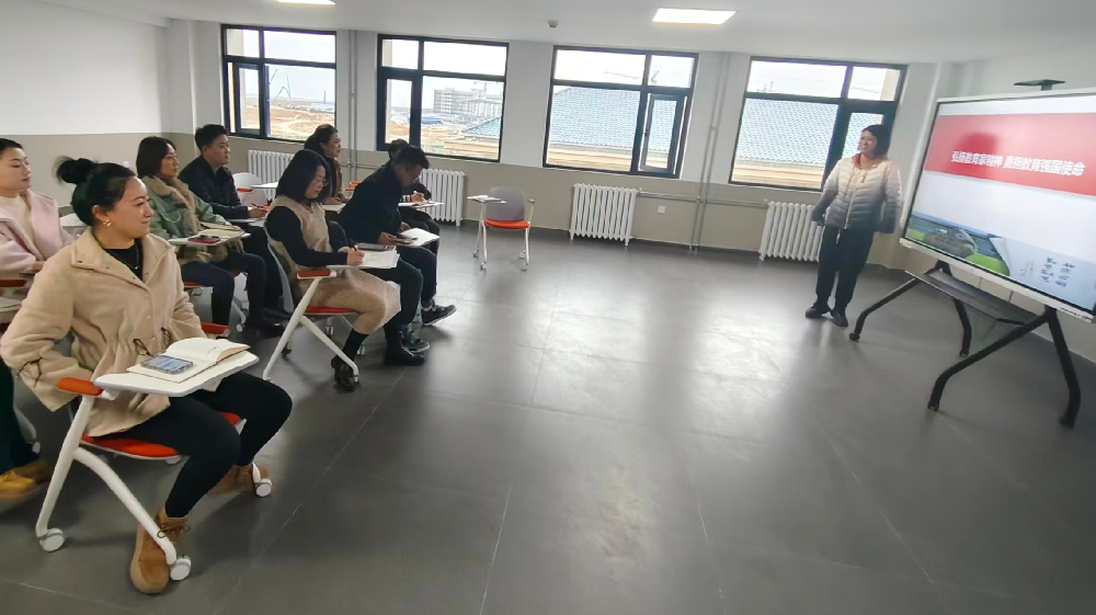 培训会议上,主持人魏兰昉老师系统解读了教育家精神的六大内涵:理想信念、道德情操、育人智慧、躬耕态度、仁爱之心与弘道追求。会议结合张伯苓的“爱国三问”、陶行知的“教学做合一”、于漪的师德实践等典型案例,生动阐释了教育家精神在教师日常工作中的具体体现。此外,会议还深入分析了教育、科技、人才一体化推进的战略部署,强调教师应立足民族复兴大局,以“胸怀家国、勤学敏思”的态度投身教育事业。通过案例分析与互动讨论,教师们进一步明确了新时代师德师风建设的方向,增强了立德树人的责任感和使命感。