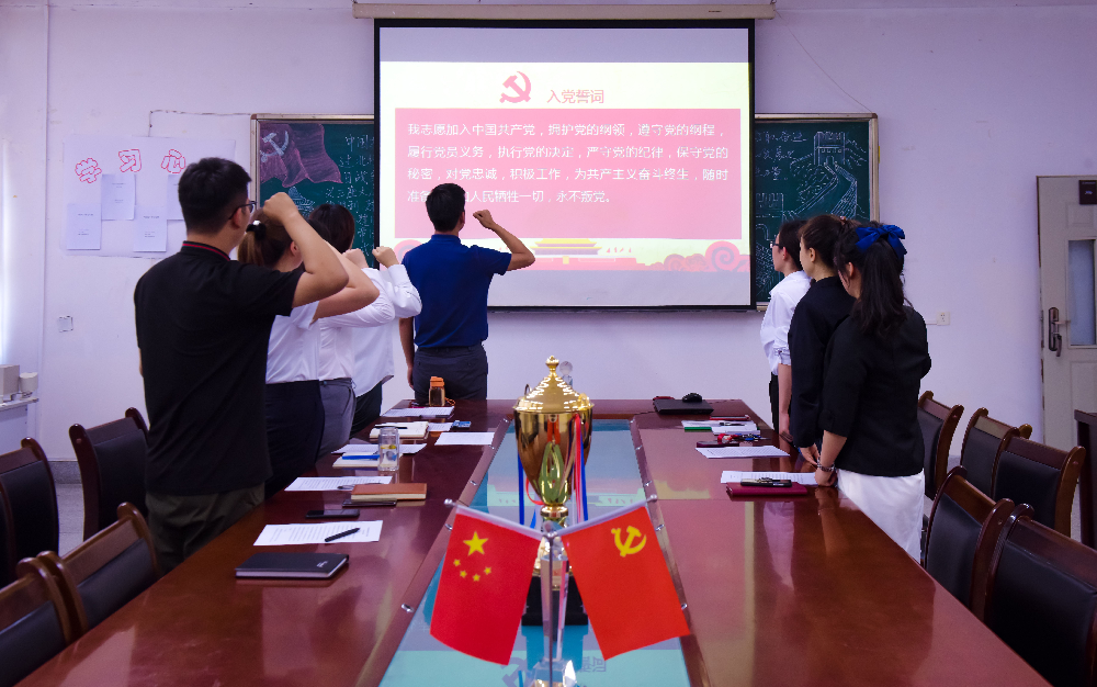 大会在庄严恢宏的中华人民共和国国歌中拉开序幕,共计五项会议内容。会议第一项,由党员教师姜怀代领全体参会人员重温入党誓词;第二项,由党员教师薛文娟组织全体党员集体学习阅读习近平总书记在庆祝中国共产党成立100周年大会上的重要讲话精神;会议第三项,支部书记牛易嵘带头就2021上半年来党支部工作开展情况(特别是开展党史学习教育情况)作汇报报告。支部委员依次进行,每位党员就自己撰写的个人剖析材料逐一发言,并开展批评与自我批评。会议第四项,学院领导对我系党支部的工作学习情况提出批评意见建议,结合实际强调批评与自我批评的重要性,提倡“一日三省吾身”,要求批评要深入、要彻底、不要不敢说、不能说、并强调作为旁观者批评他人对于自省、自警有着重要警醒作用。
