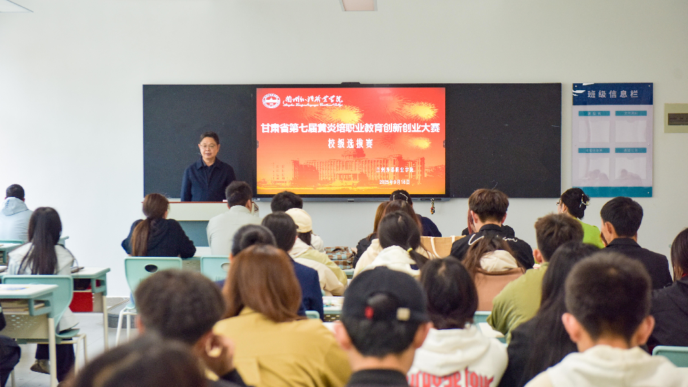 9月18日,兰州外语职业学院成功举办2025年甘肃省第七届黄炎培职业教育创新创业大赛校级选拔赛。学院副院长宋元文出席活动并致辞,科研处、教务处、各二级学院负责人,各项目团队负责人、指导教师及成员共同参会。会议由科研处负责人程志琳主持。