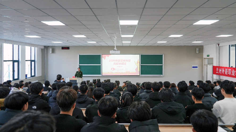 为进一步激发广大学子参军报国热情,推动大学生征兵工作深入开展,12月24日下午,我院举行2026年征兵工作启动仪式暨大学生征兵政策宣讲会。榆中县人民武装部上校部长徐铁成应邀来校作专题宣讲。学院副院长刘琳丽、学生处副处长柴崇、学生处全体成员及有参军意向的200余名学生代表参加了活动。