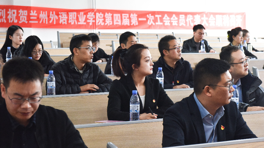 凝心聚力担使命,团结奋进新征程。3月18日,兰州外语职业学院第四届第一次工会会员代表大会在学校思齐堂召开,会议邀请了甘肃省教科文卫工会、兰州新区文曲湖中心社区相关领导莅临指导。学院领导、第四届工会委员会候选人、工会会员代表等齐聚一堂,共商工会发展大计,共绘服务职工、助推学院发展蓝图。大会由学院党委副书记陈蕾主持。
