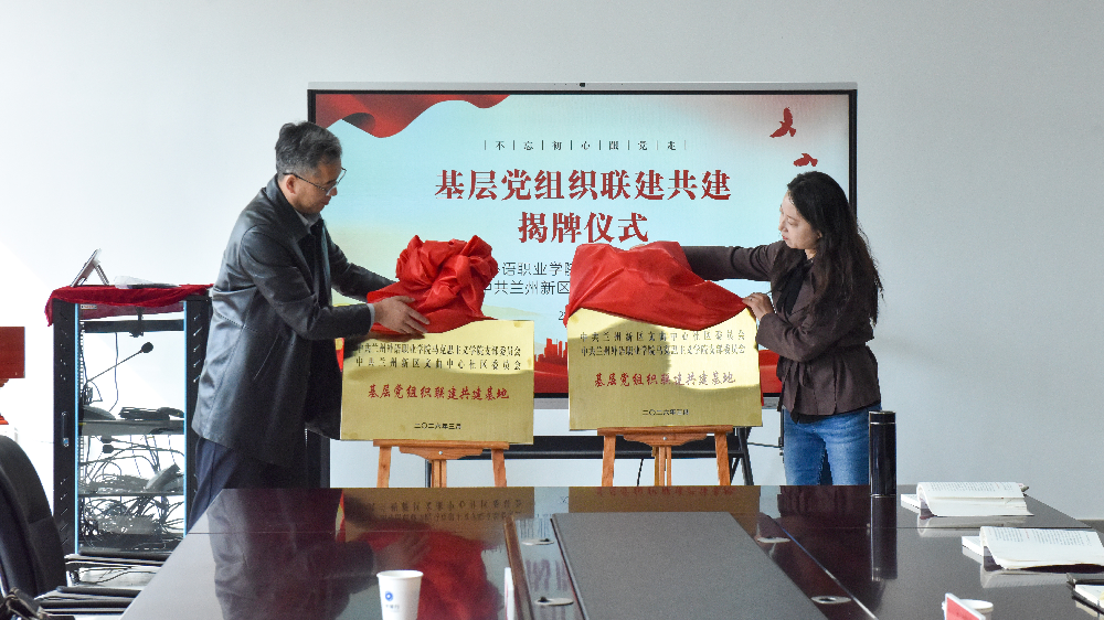 为深入学习贯彻习近平新时代中国特色社会主义思想,落实新时代党的建设总要求,推动高校党建与基层治理深度融合,实现资源共享、优势互补、共建共促,3月26日上午,中共兰州外语职业学院马克思主义学院支部委员会与中共兰州新区文曲中心社区委员会基层党组织联建共建揭牌仪式在兰州外语职业学院隆重举行。