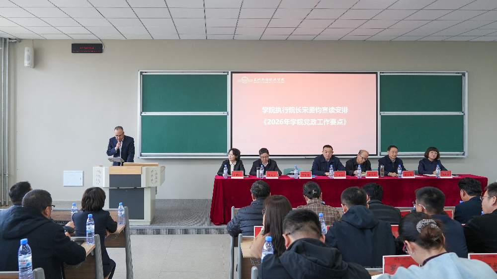 会上,副院长宋元文宣读学院2025年工作总结,全面回顾过去一年学院在党建、教学、管理、安全等方面取得的成效。执行院长宋贤钧安排部署2026年学院党政工作要点,明确全年发展方向与重点任务。